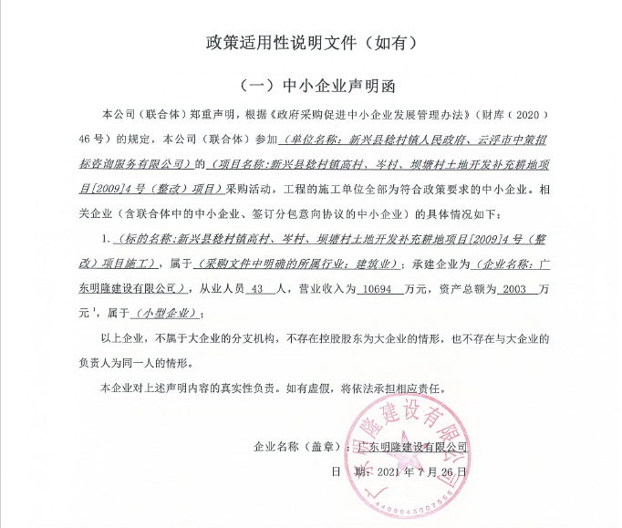 3、明隆--中小企業聲明函