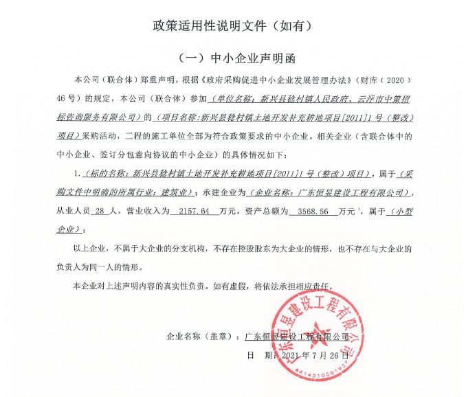 1、恒昱--中小企業(yè)聲明函