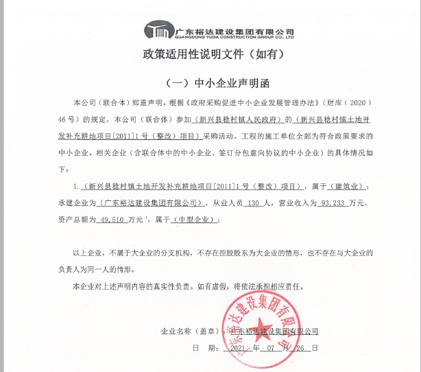 3、裕達(dá)--中小企業(yè)聲明函